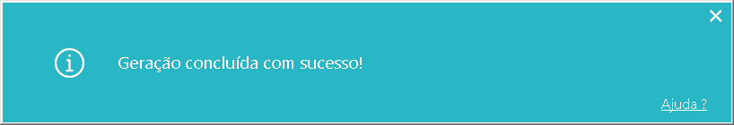 Imagem 06 - Ao acionar o botão mencionado anteriormente, a mensagem acima é apresentada informando que a geração foi gerada com sucesso.