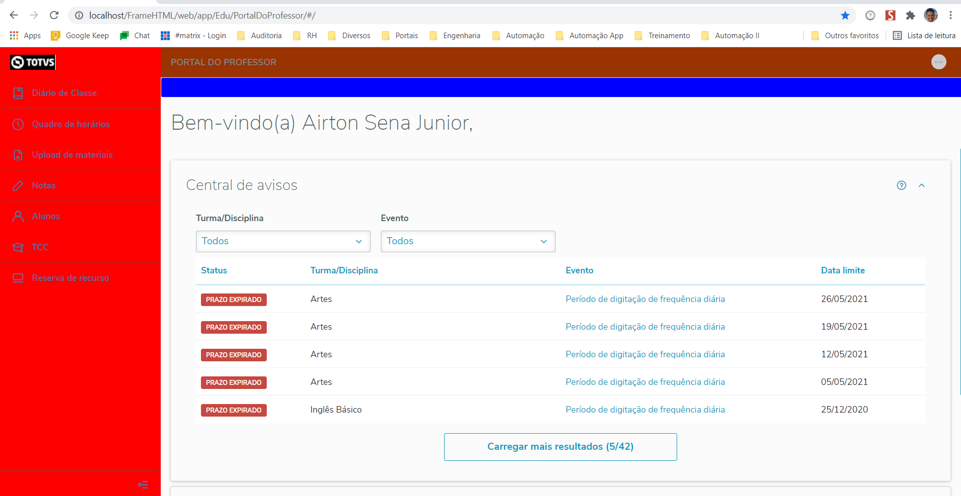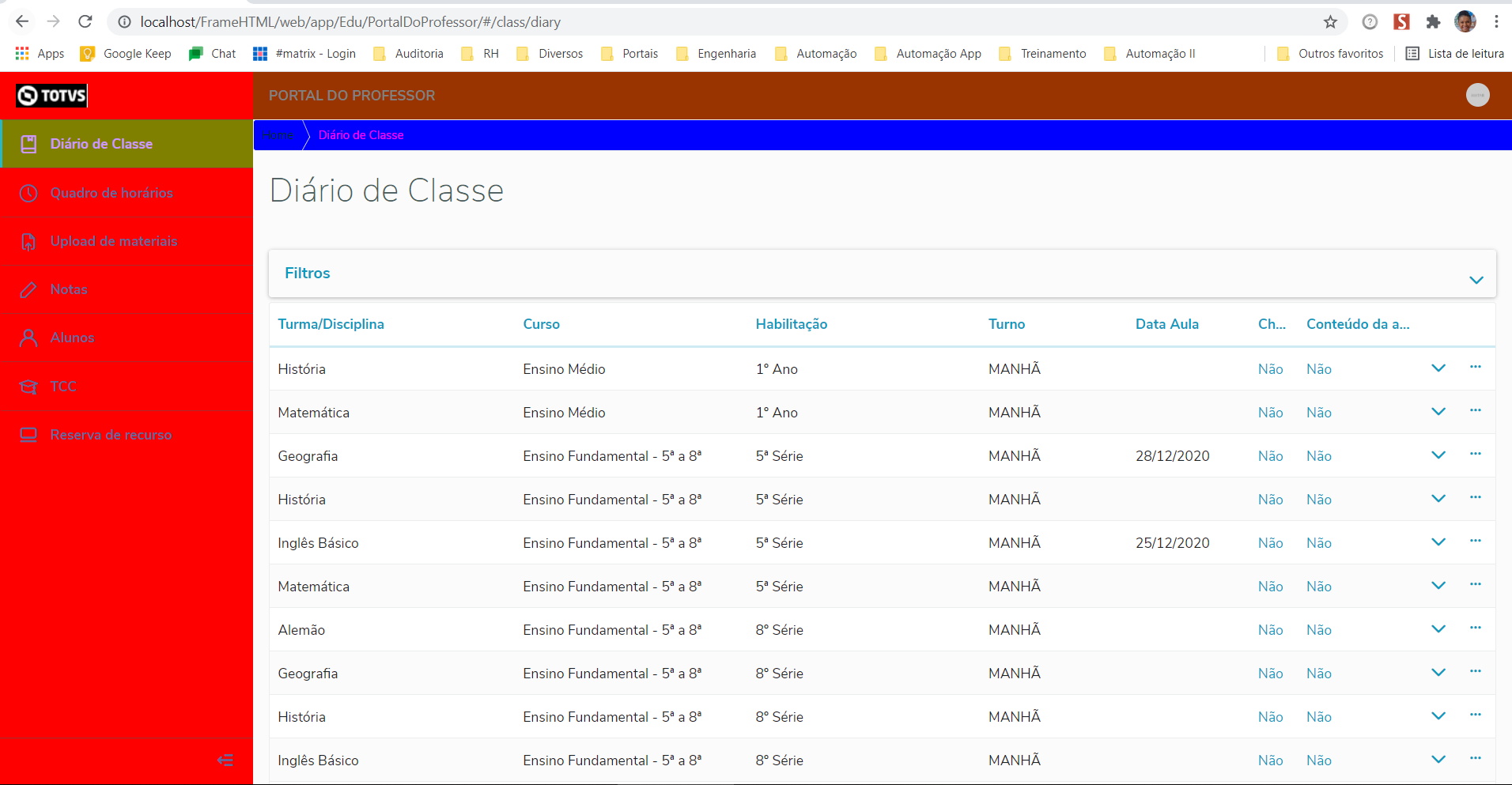 Ao acessar o portal, seguirá as cores conforme a parametrização realizada no RM.exe.