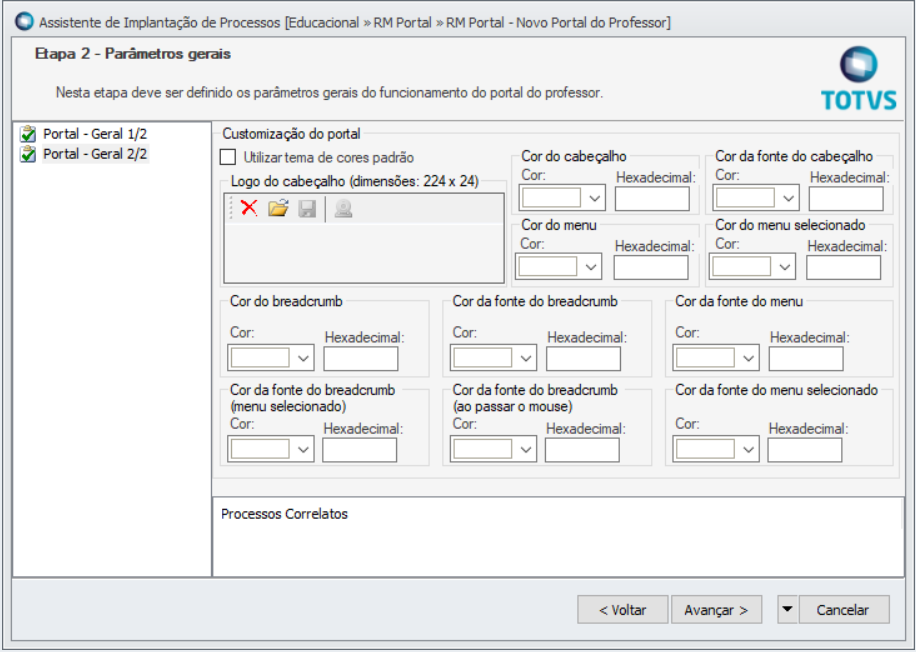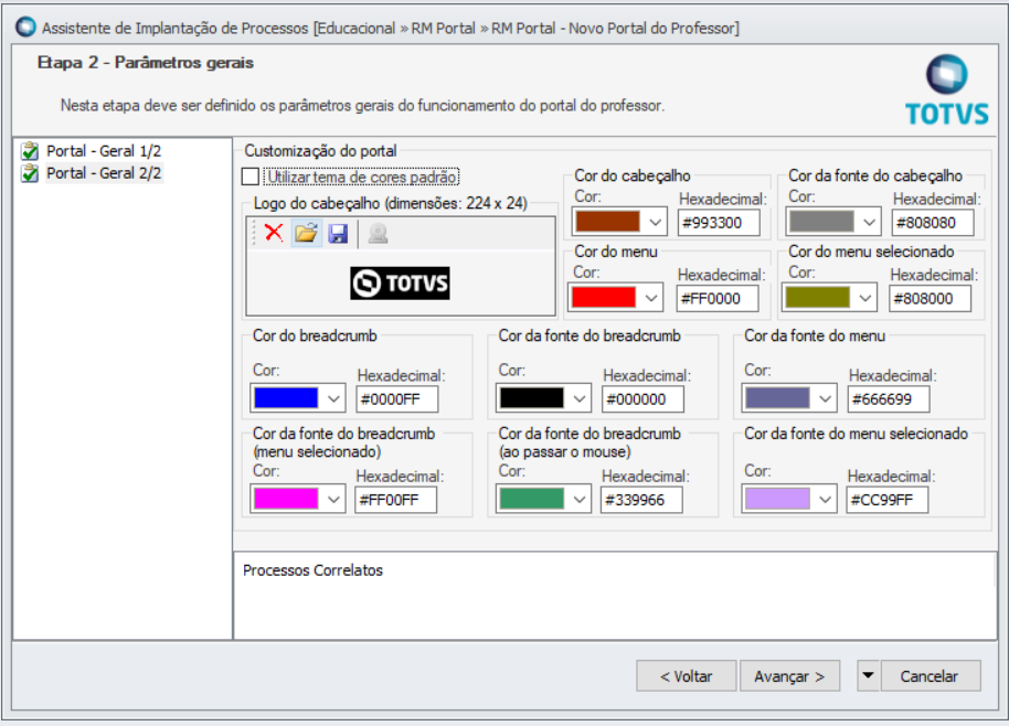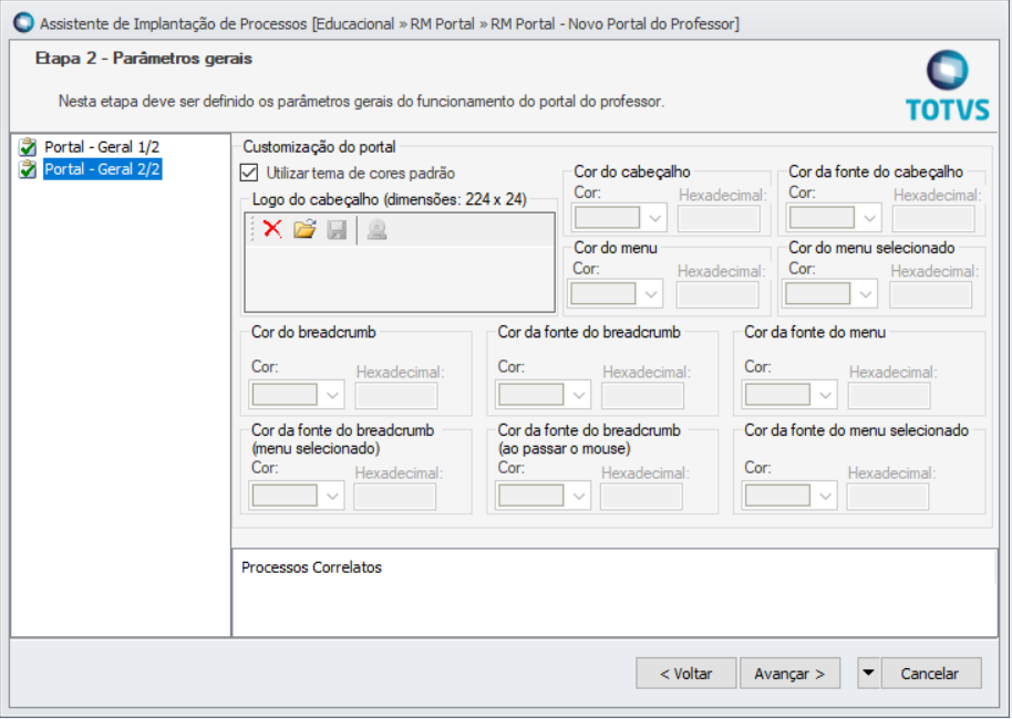 Ao acessar esse menu, o parâmetro: "Utilizar tema de cores padrão" estará marcado com isso ( o portal manterá a cor padrão de instalação).
