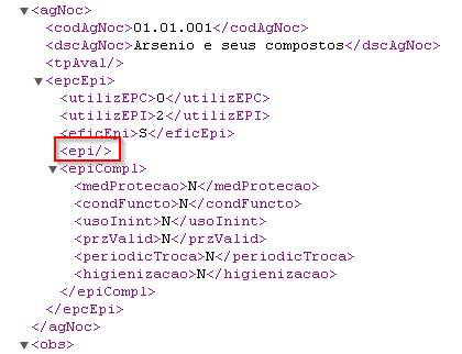 Imagem 3 - Quando gerado o evento S-2240 com a configuração do evento 1.1 não será gerada a tag "dscEPI".