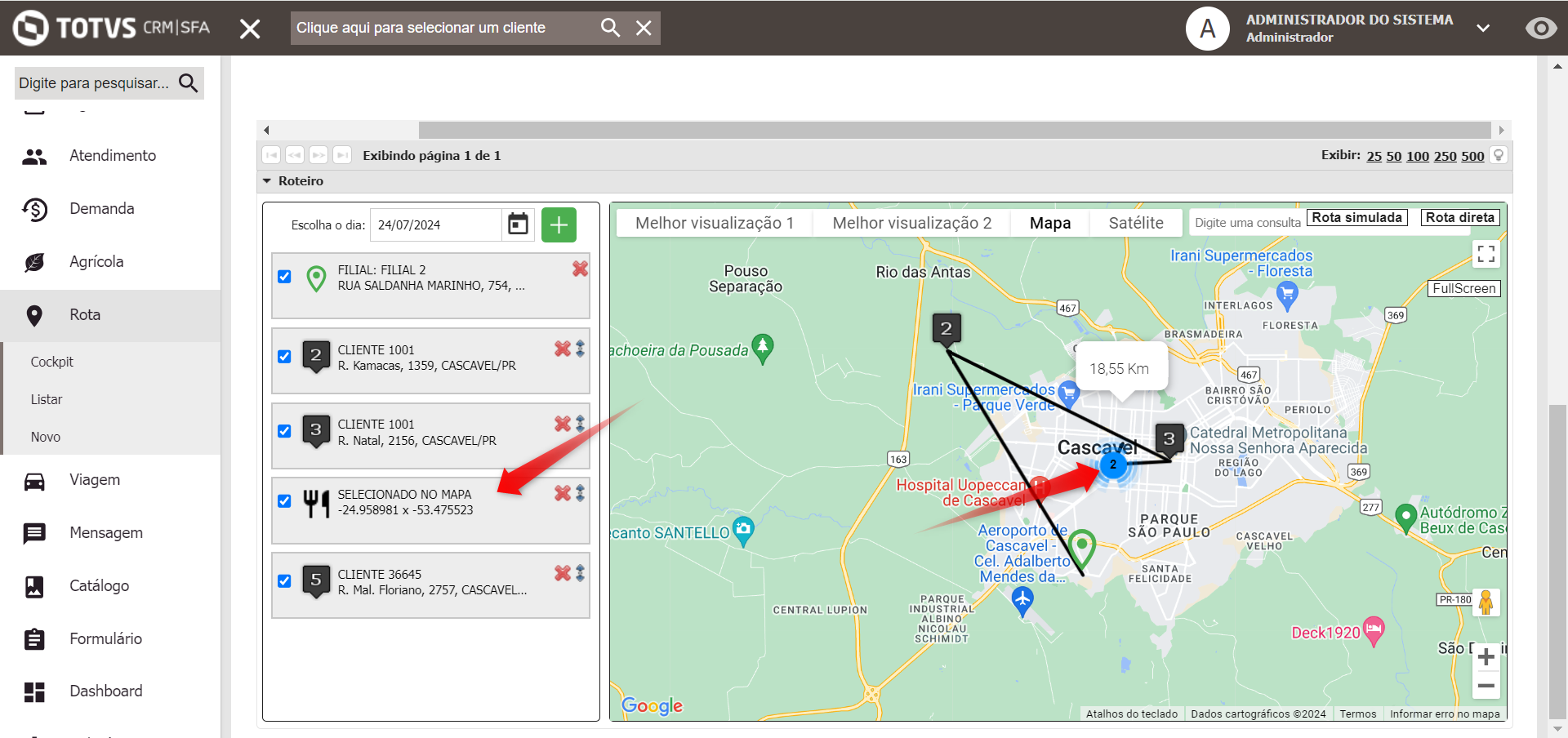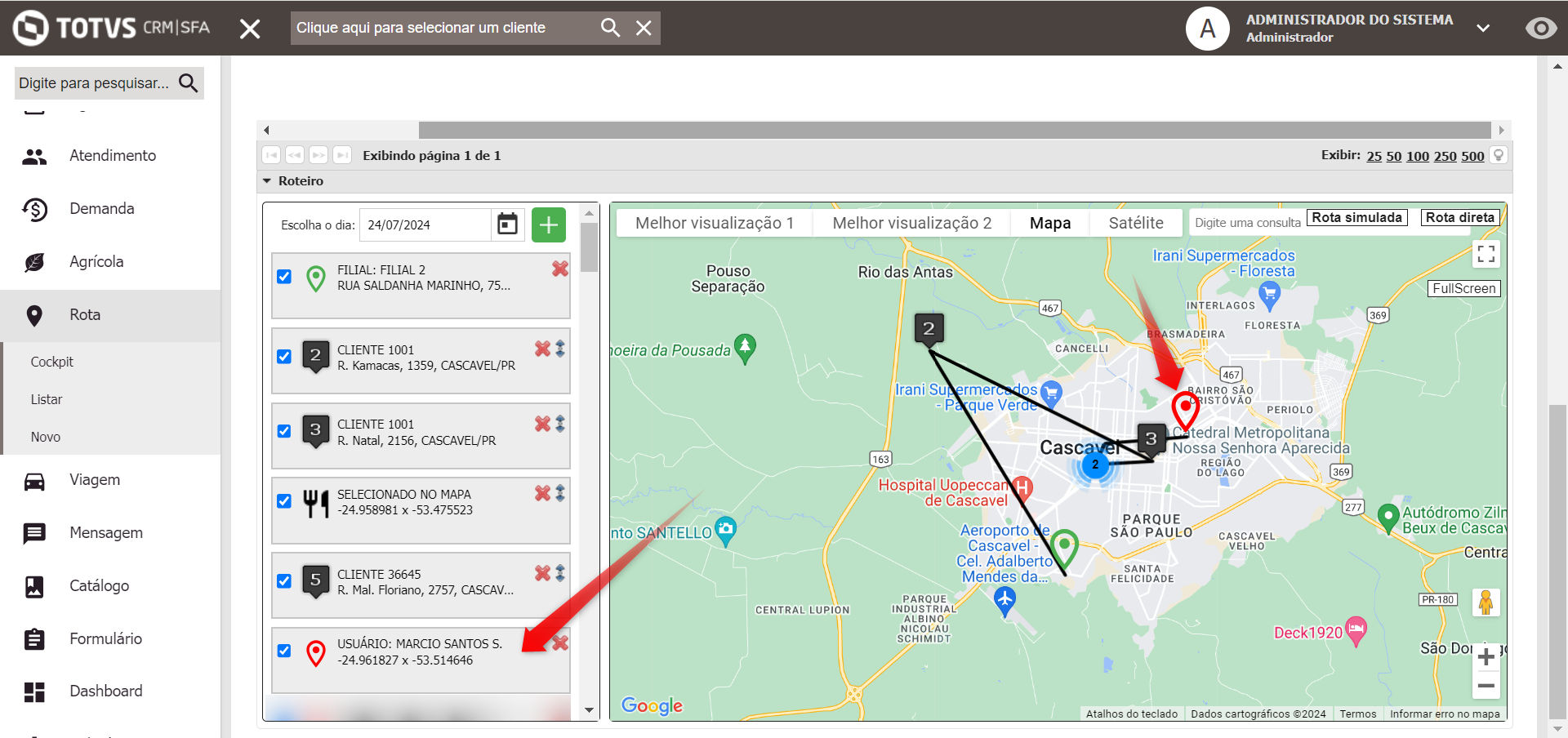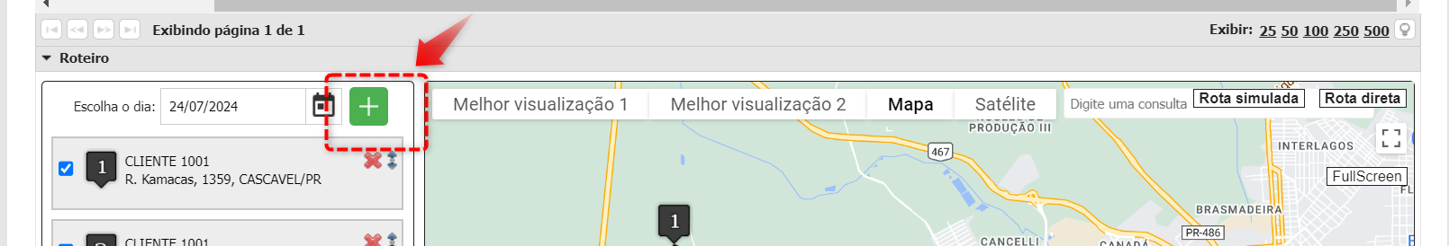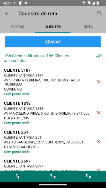 Para isso, foi ajustada a tela de listagem de clientes da rota, de forma que os pontos adicionais da rota passem a ser apresentados junto da listagem de clientes.