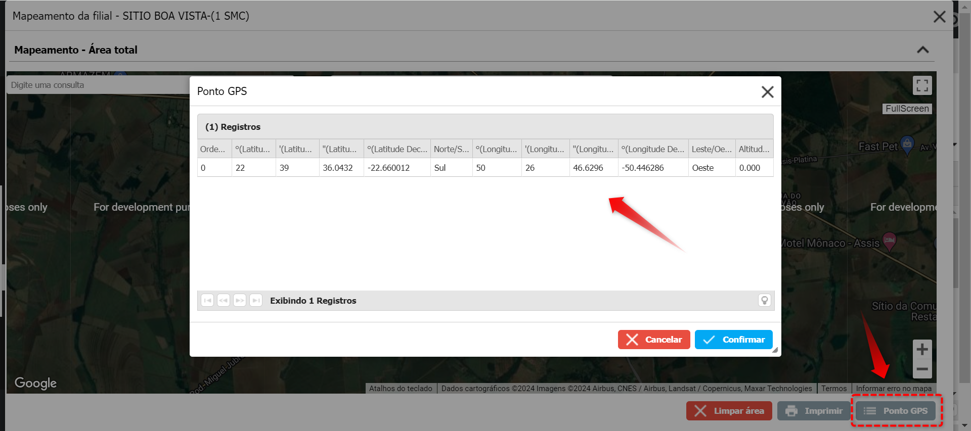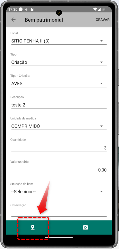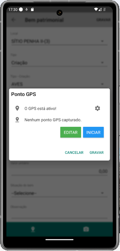 Inclua o Ponto GPS no Mapa, conforme já realizado nos cadastros anteriores: