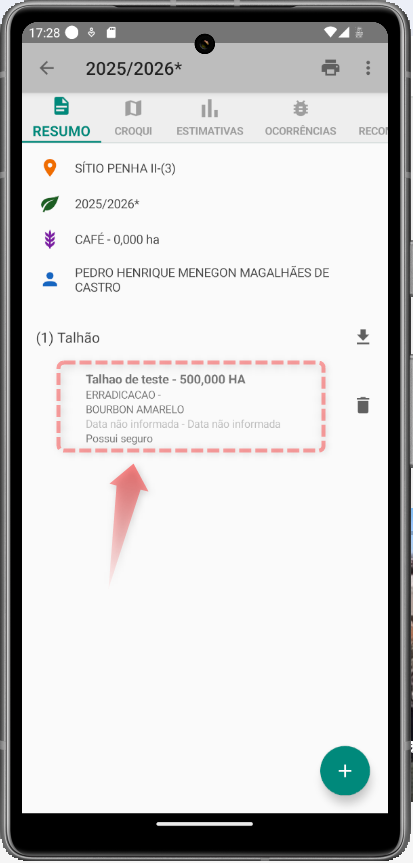 No android, o profissional acessa a Rota e os dados já são exibidos conforme configurados: