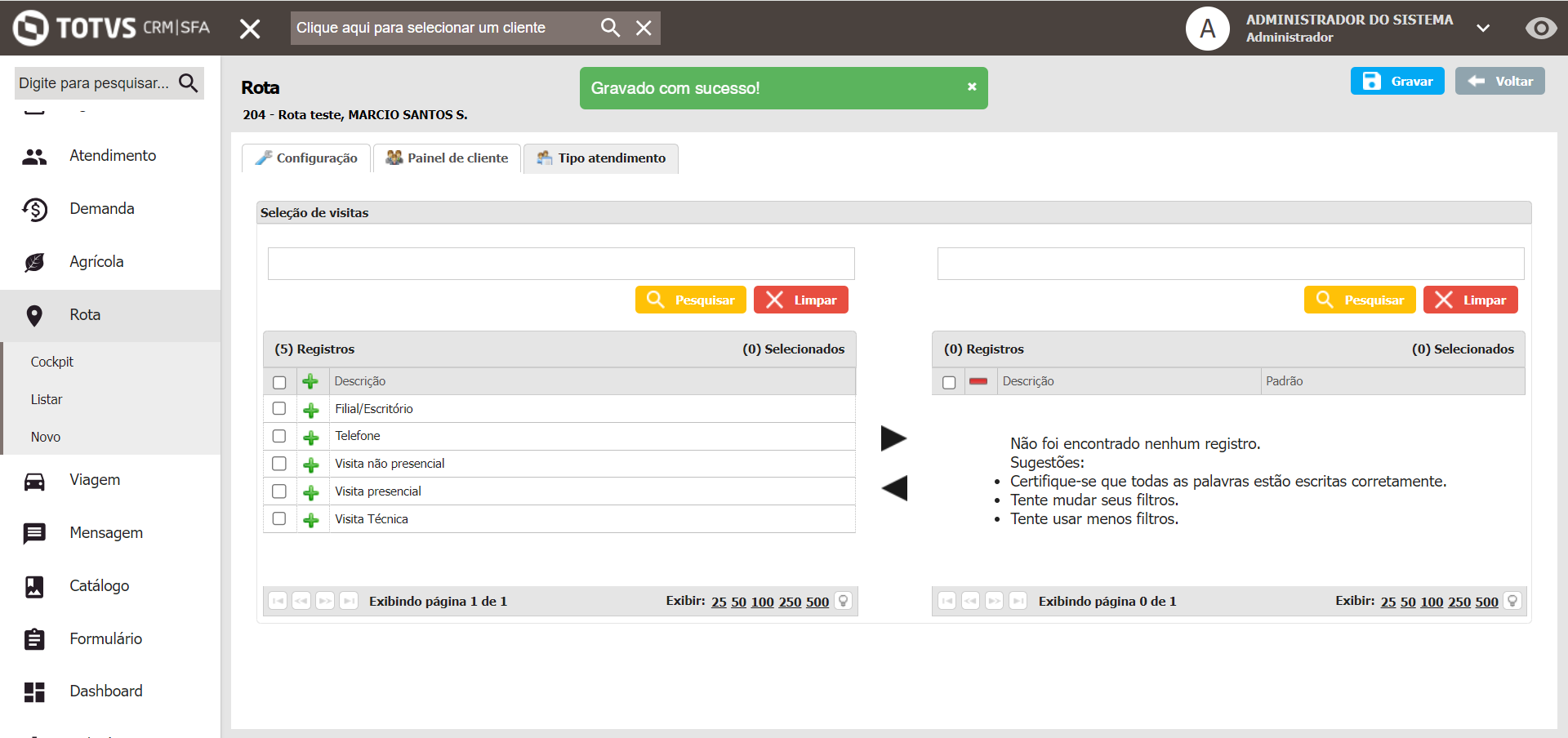 E ao gravar, é concluída a adição à rota para que possa seguir o atendimento normalmente: