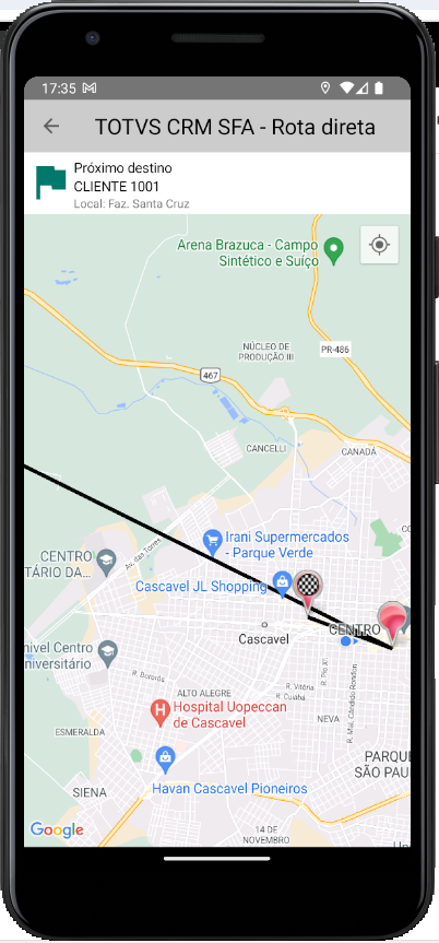 E no Roteiro já é exibido o caminho do Ponto de partida até o primeiro cliente