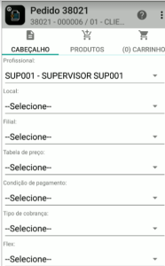 No ambiente Android terá a mesma funcionalidade de acordo com os campos adicionais cadastrado no sistema. As informações dos produtos serão validadas de acordo com os campos adicionais para o tipo de visita.