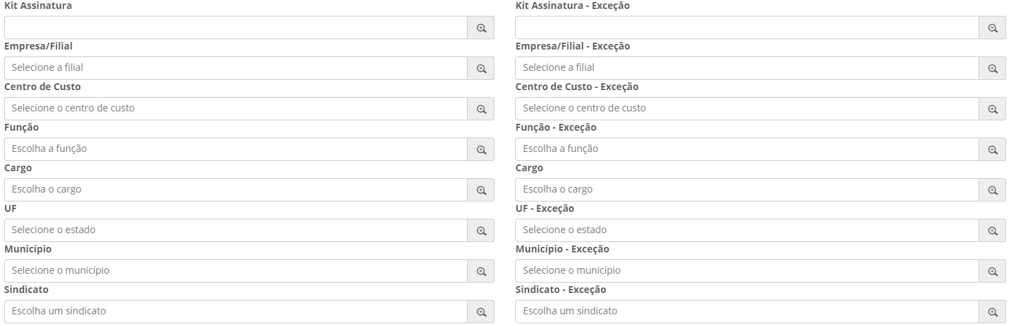 Existem campos padrão da ferramenta que podem ser utilizados como parâmetro para um determinado benefício mas é possível incluir qualquer campo existente, como campos adicionais customizados.