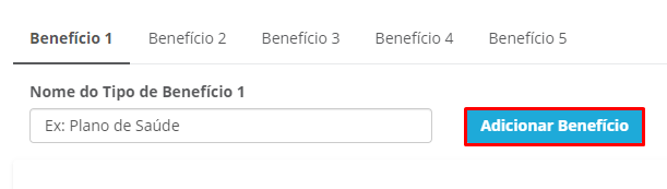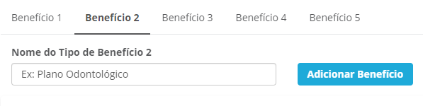 Essa informação irá definir qual o tipo de benefício que será cadastrado naquela aba. É possível criar até 5 tipos de benefícios.