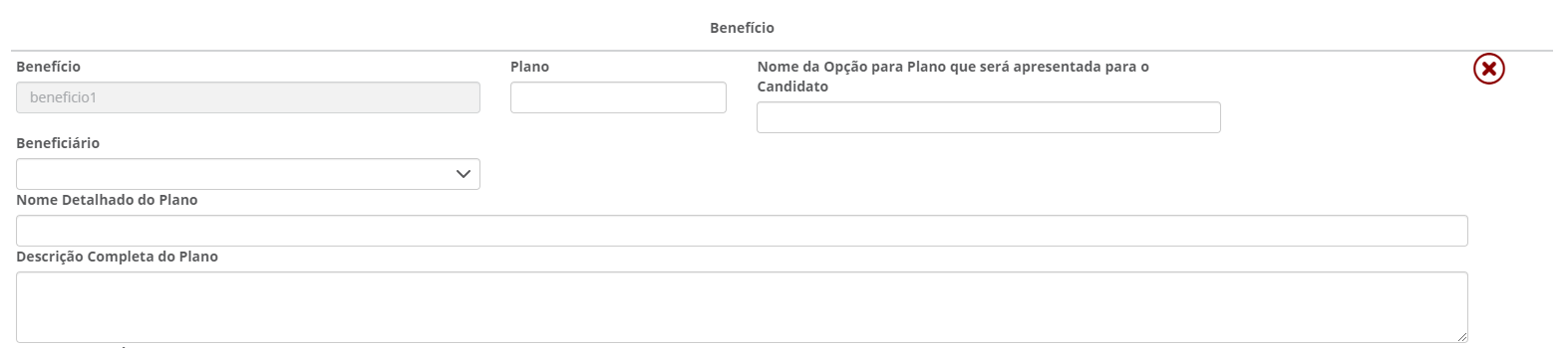 Recomenda-se cautela ao excluir benefícios que já estão vinculados a processos de candidatos em andamento. Caso deseje remover apenas um plano específico (e não o cadastro inteiro), utilize a função Editar e clique no ícone de lixeira ao lado esquerdo do benefício desejado.