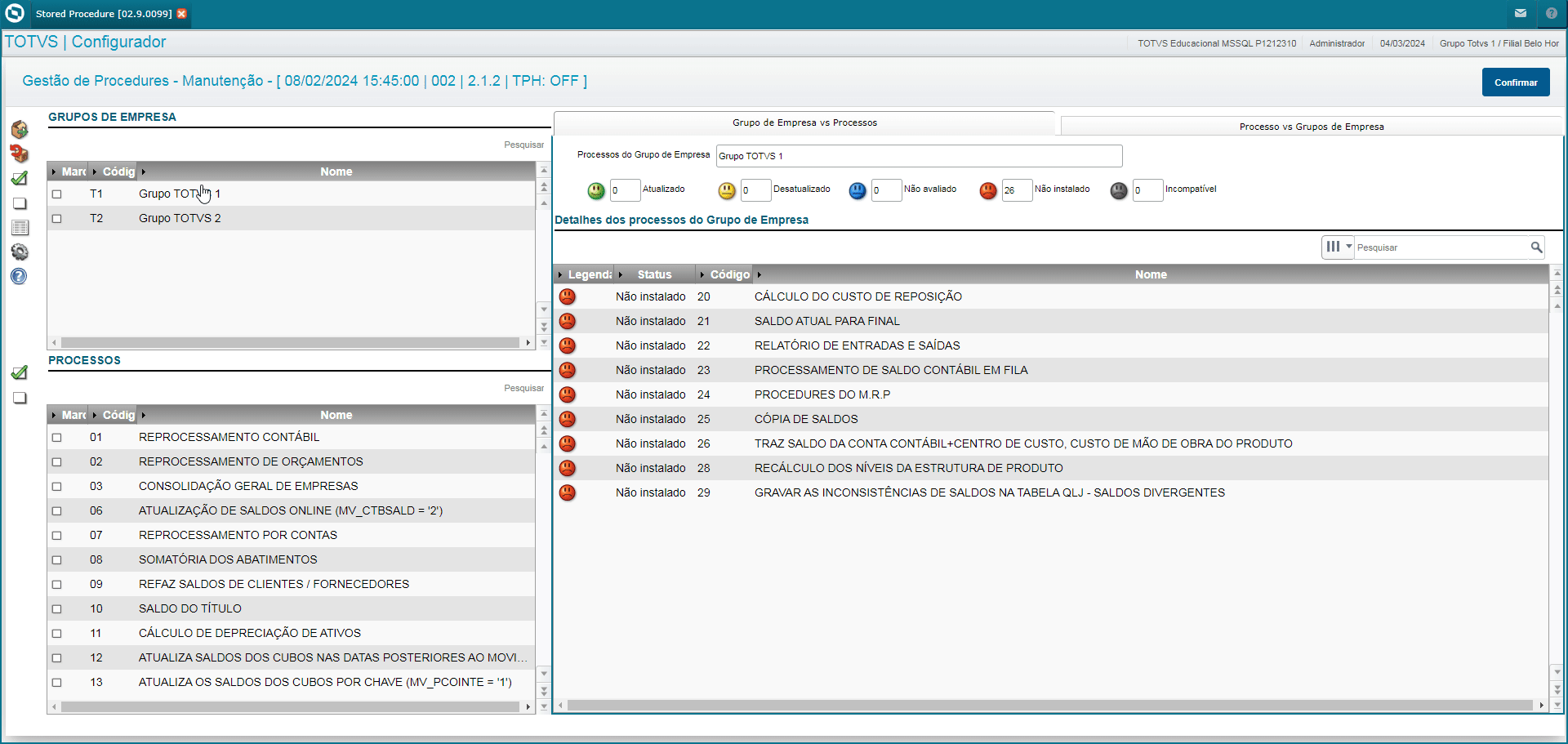 Com isso, também eliminamos a necessidade de executar o reprocessamento de saldos contábeis (CTBA190) durante a exclusão do cálculo anterior do custo médio.