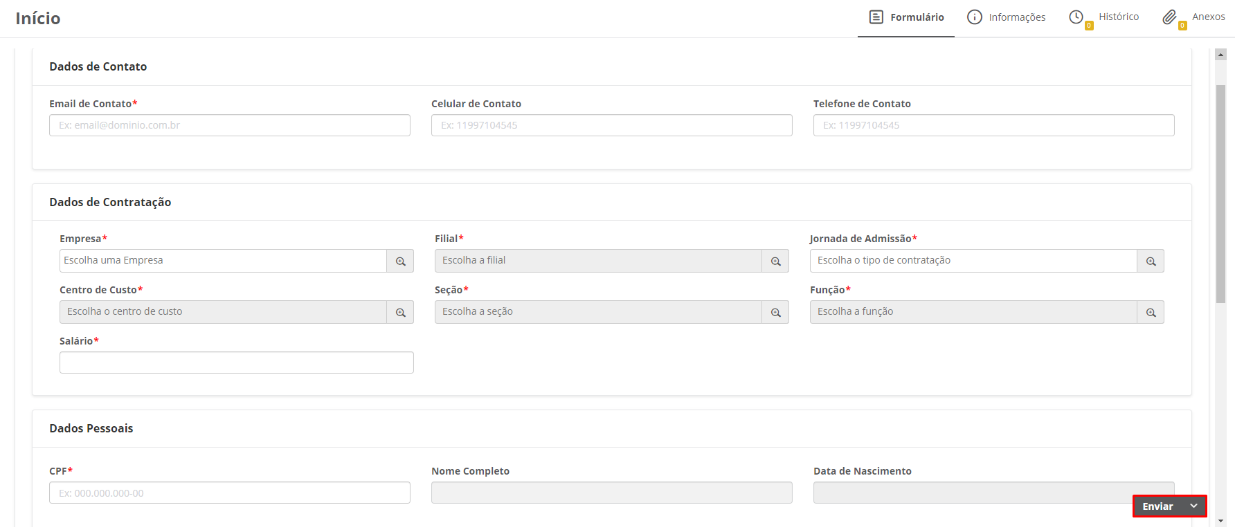 Será apresentado o formulário que possui informações que serão informadas pelo time de RH e pelo colaborador.