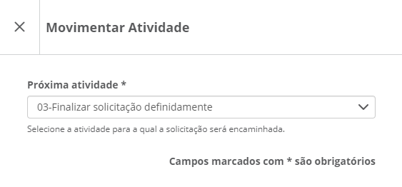 A solicitação poderá ser movimentada para etapas anteriores ou finalizada definitivamente.