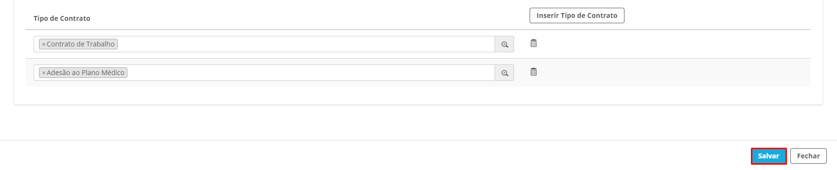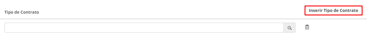 Ao clicar em "Inserir Tipo de Contrato", uma barra de pesquisa estará disponível, onde será possível selecionar os contratos que você quer no grupo.