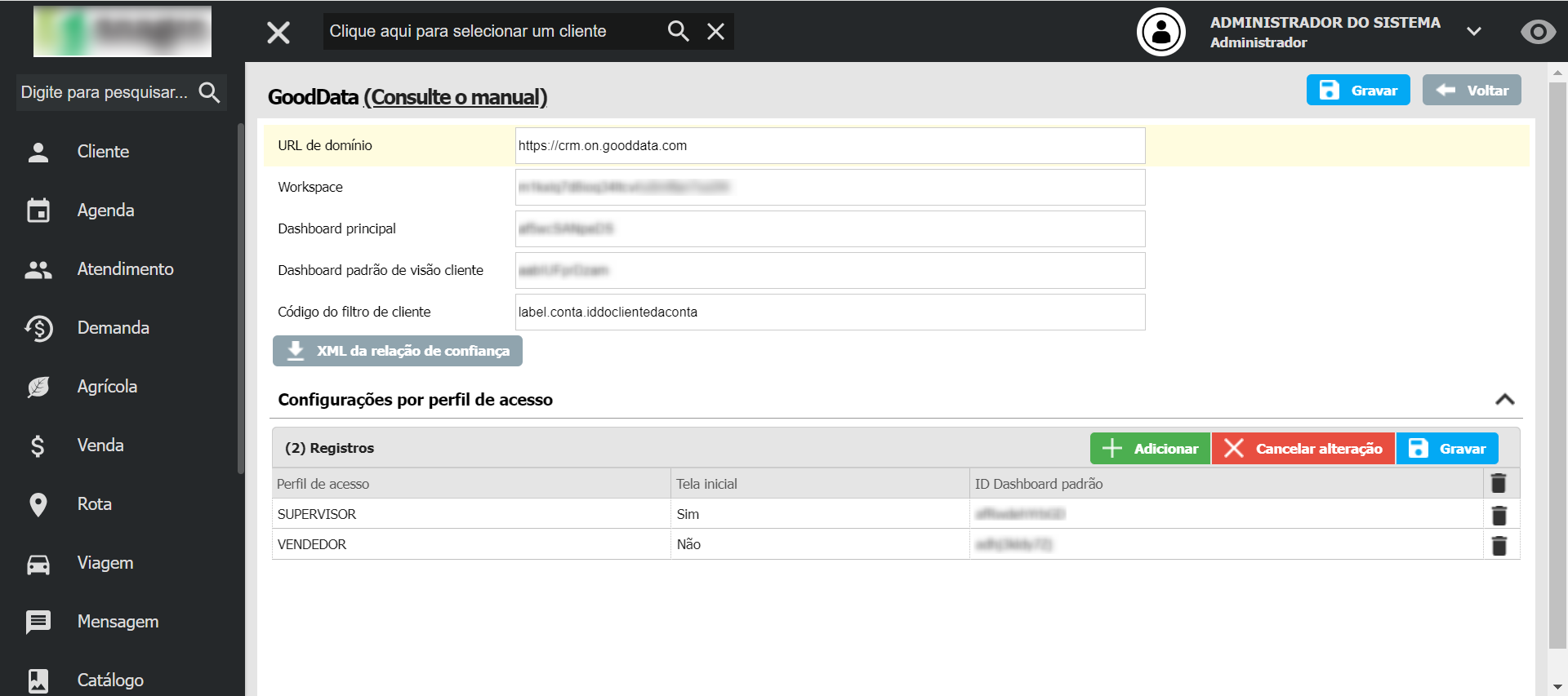 | Workspace | Conjunto de Dashbards cadastrados no GoodData do cliente |