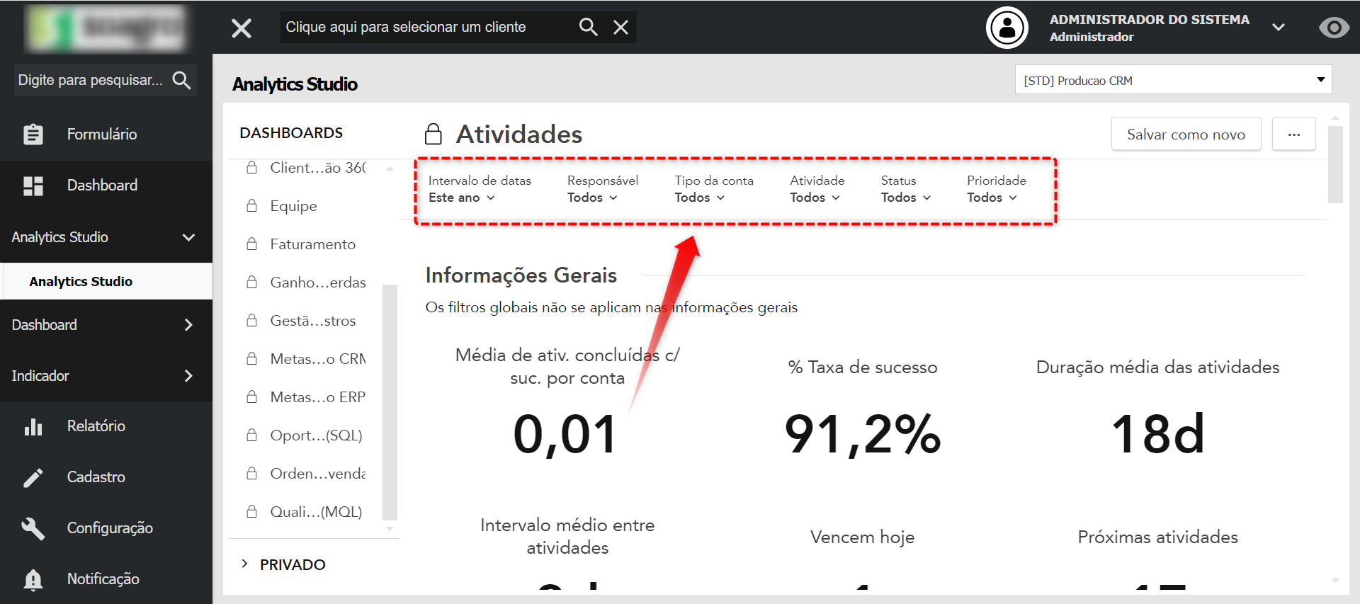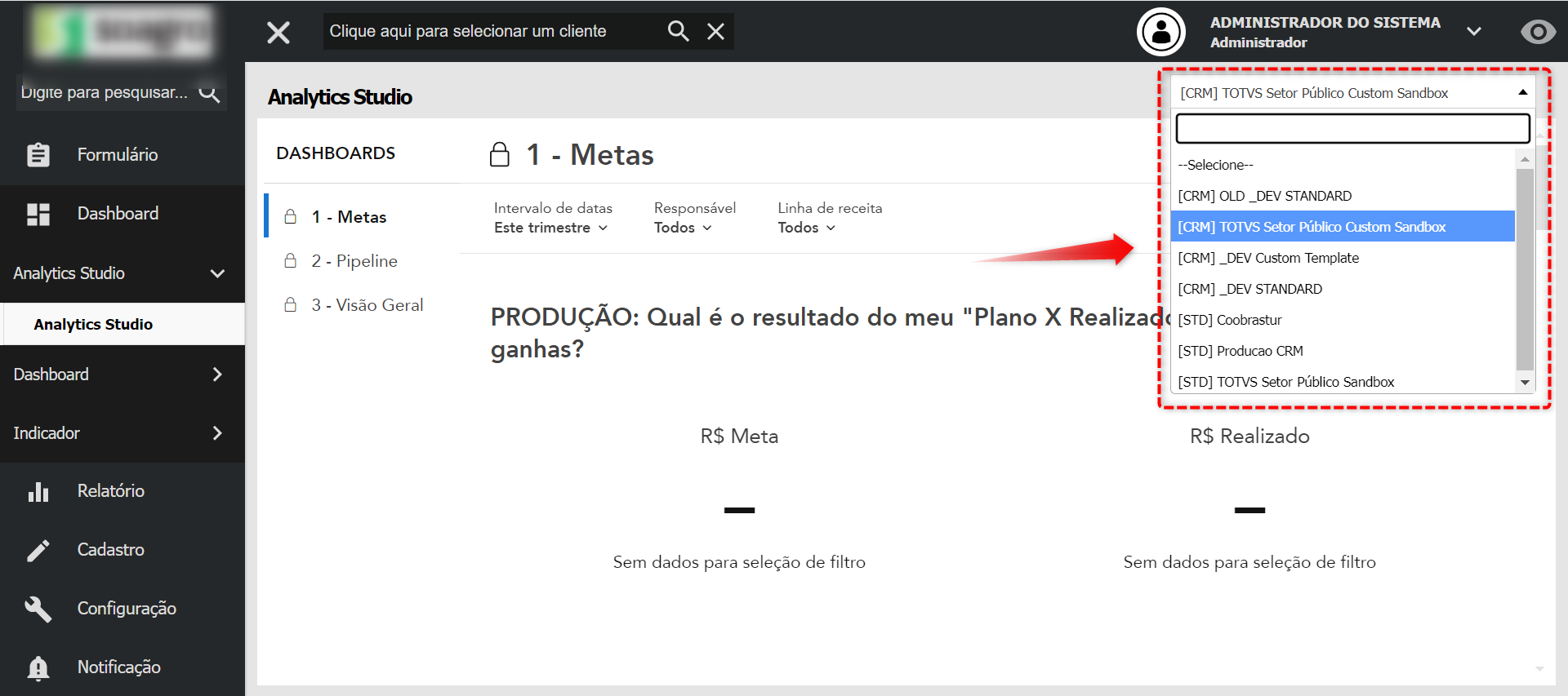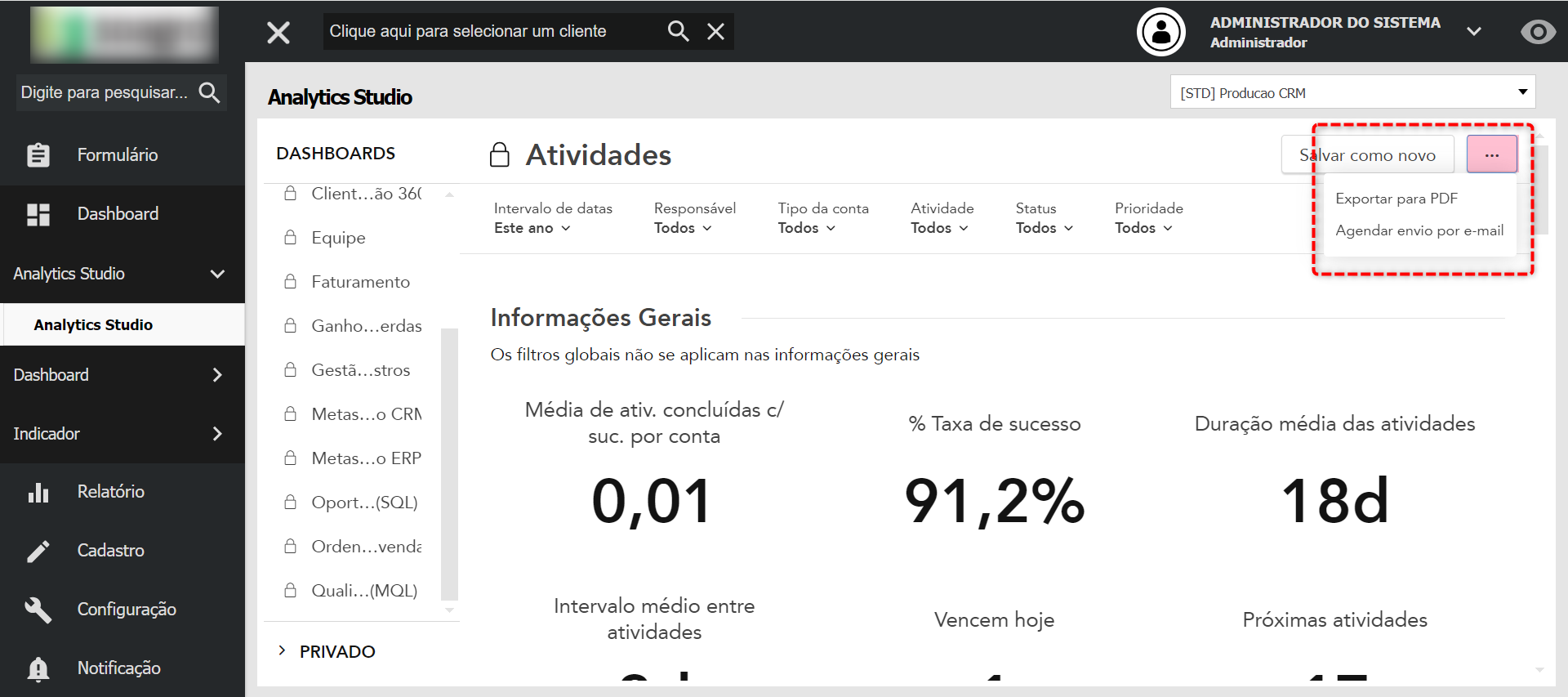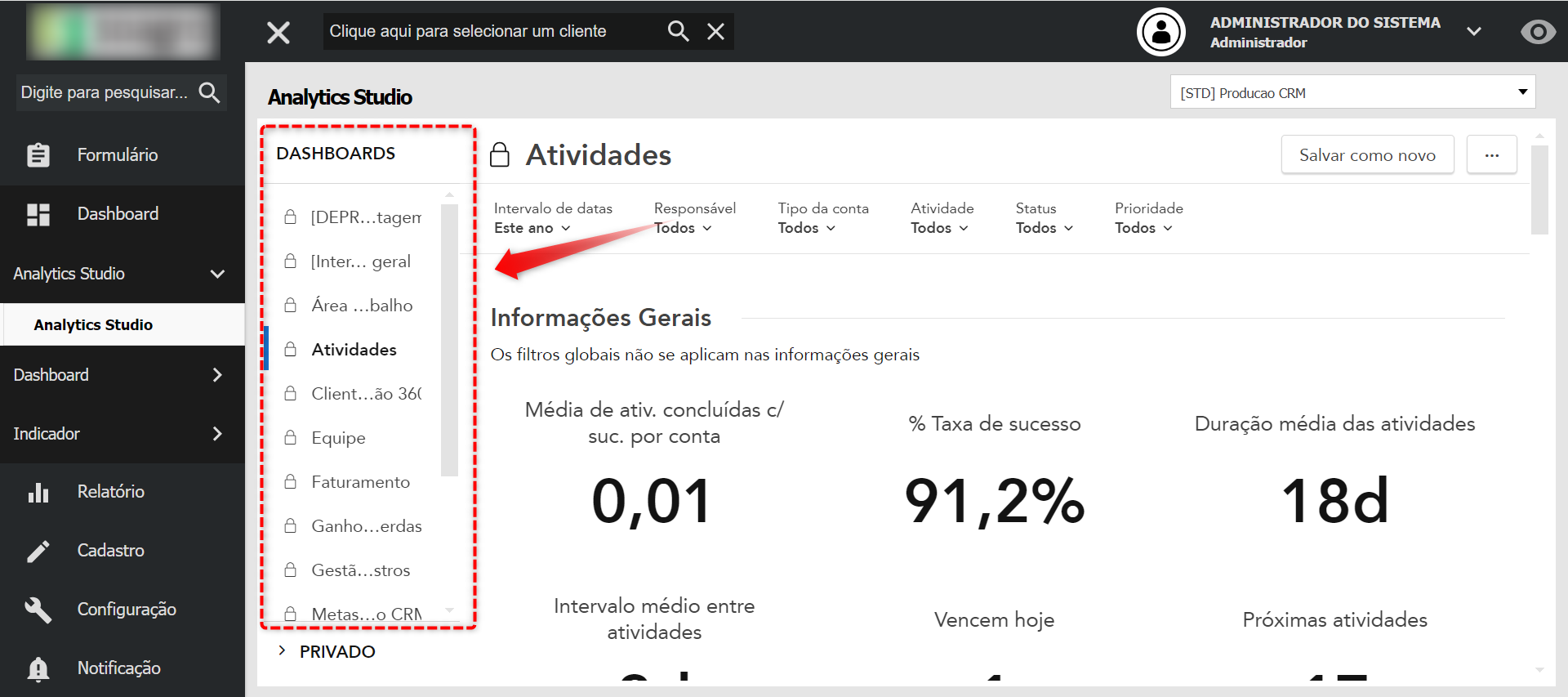 Acesse Dashboard > Analytics Studio > Analytics Studio e os dashboards já serão exibidos: