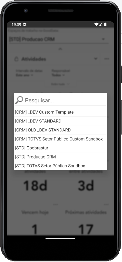 E a exibição é similar a web, incluindo os filtros e alteração de workspace: