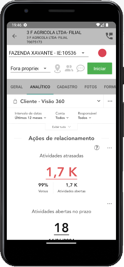 Acesse Cliente > Selecione um cliente > Navegue até guia "Analítico" e a Visão 360º será exibido