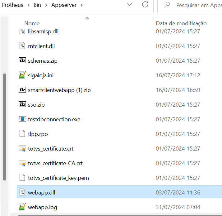 Observação: Neste caso como Appserver pode estar em 64 Bits pode ser baixado a DLL WebApp de 64 Bits.