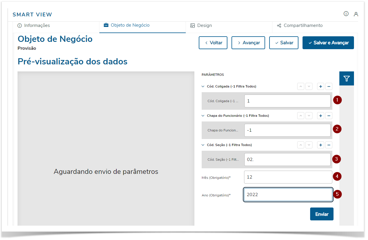 Nem todos os campos do objeto de negócios serão utilizados ou visualizados no relatório disponibilizado pela TOTVS. Alguns campos servirão para parâmetros/filtros. Outros foram disponibilizados para facilitar para o usuário caso o mesmo queira customizar algum relatório com estes dados sem a necessidade de customizar por fórmulas por exemplo.