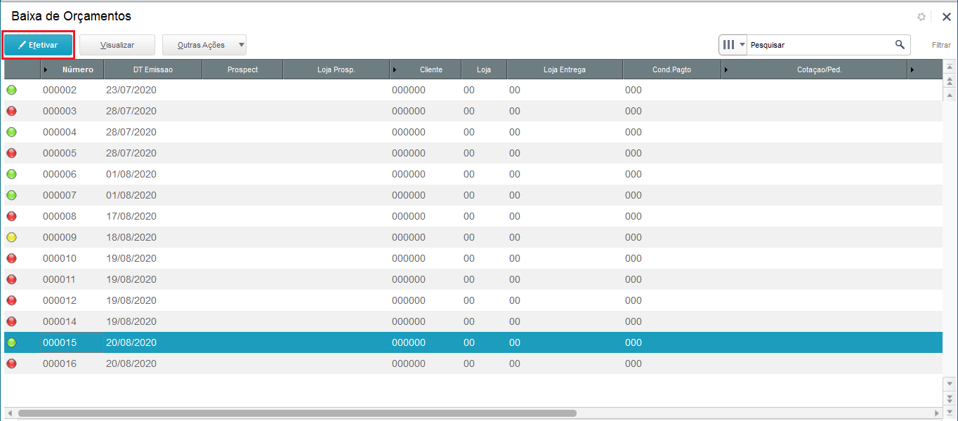 Una vez configuradas las preguntas anteriores, al seleccionar un Presupuesto en la pantalla de Aprobaciones de venta (MATA416) el sistema mostrará la opción de "Hacer efectiva":