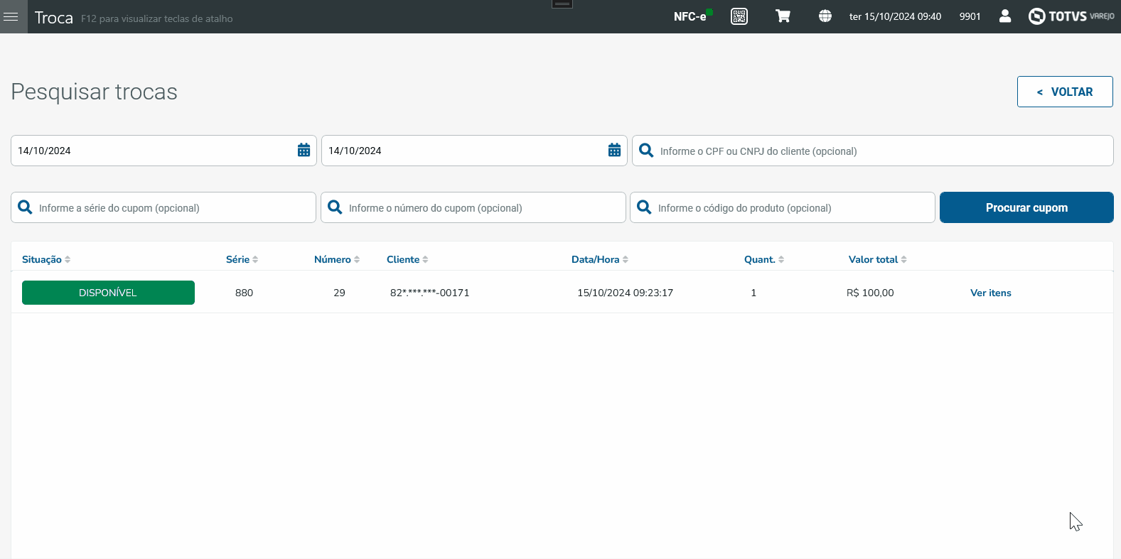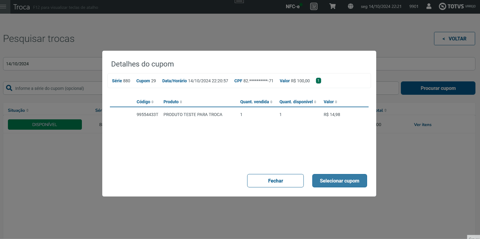 | Função: | TROCA POR CUPOM |