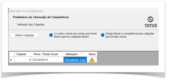 - Permite continuar o processo, ignorando o aviso apresentado.