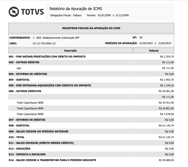 | Módulo: | TOTVS Backoffice (Linha Datasul) - Obrigações Fiscais (MOF) |