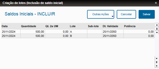 - Lote B: Foi consumido o saldo de 1, devido a uma separação realizada para este lote.