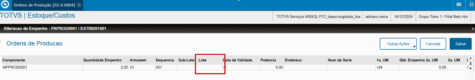 Siga o passo a passo abaixo para implantação e utilização do cenário da Troca de Lote na Ordem de Separação para uma Ordem de Produção.