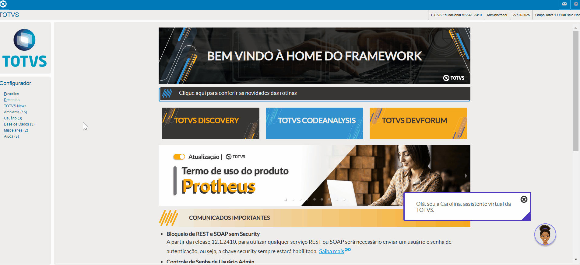 Também é necessário a atualização do ambiente através do pacote de expedição contínua do módulo disponibilizado no link: https://suporte.totvs.com/portal/p/10098/download#detail/1039095.