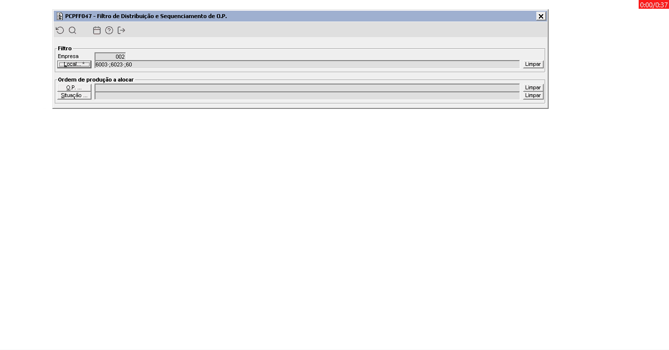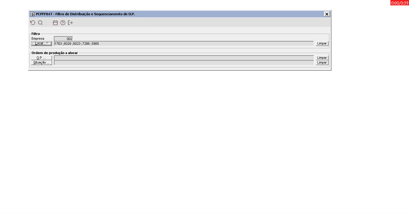 | Função: | CDFFF018 - Filtro de Local de Produção. |
