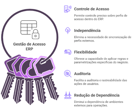 Diferente do SAML, que pode delegar parte da gestão ao provedor de identidade, no modelo OIDC o controle de usuários permanece totalmente no ERP.