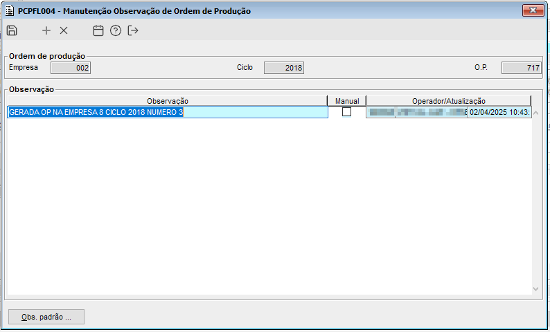 Imagem 2 - Ordem de produção 717 de empresa origem 2, duplicada para empresa 8.