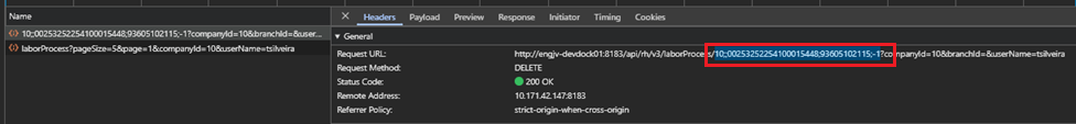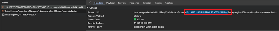 Coligada {codColigada} + Branch {codBranch} + Número do Processo {nrProcTrab} + CPF {cpfTrab} + Sequência {ideSeqTrab}