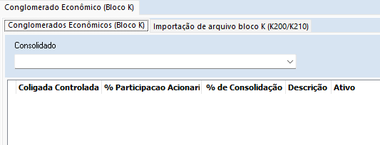 Seleção do Consolidado que será utilizado como base para a geração do Bloco K.