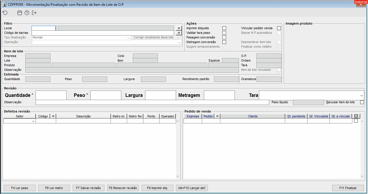 | Função: | CDFFP089 - Movimentação/Finalização com Revisão de Item de Lote de O.P |