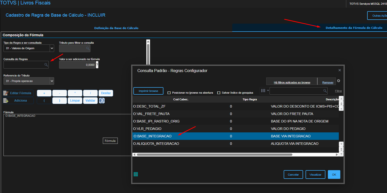 Então para atender a essa necessidade, foram criados os seguintes operandos dentro do configurador de tributos: O:BASE_INTEGRACAO, O:ALIQUOTA_INTEGRACAO e O:VALOR_INTEGRACAO.