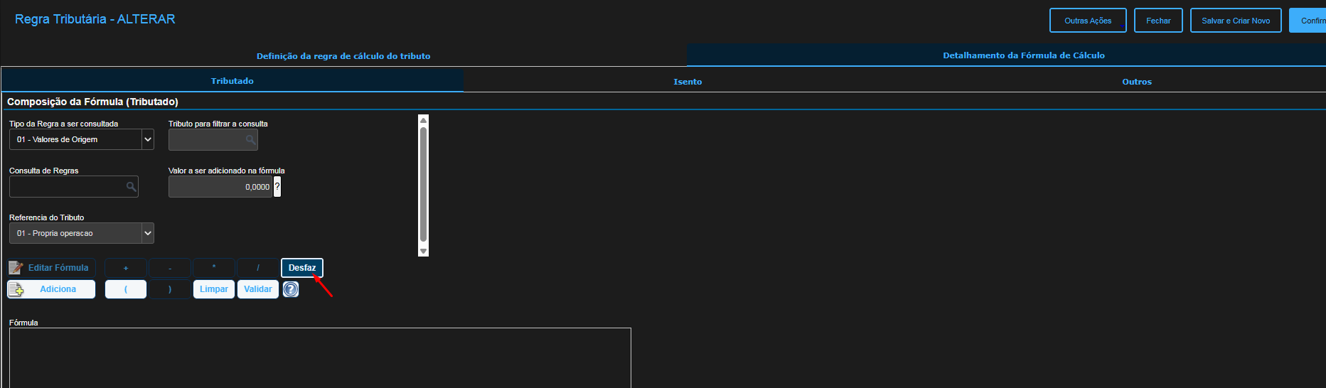 É recomendado o conhecimento sobre operandos dentro do Configurador de Tributos e seu uso dentro de fórmulas.
