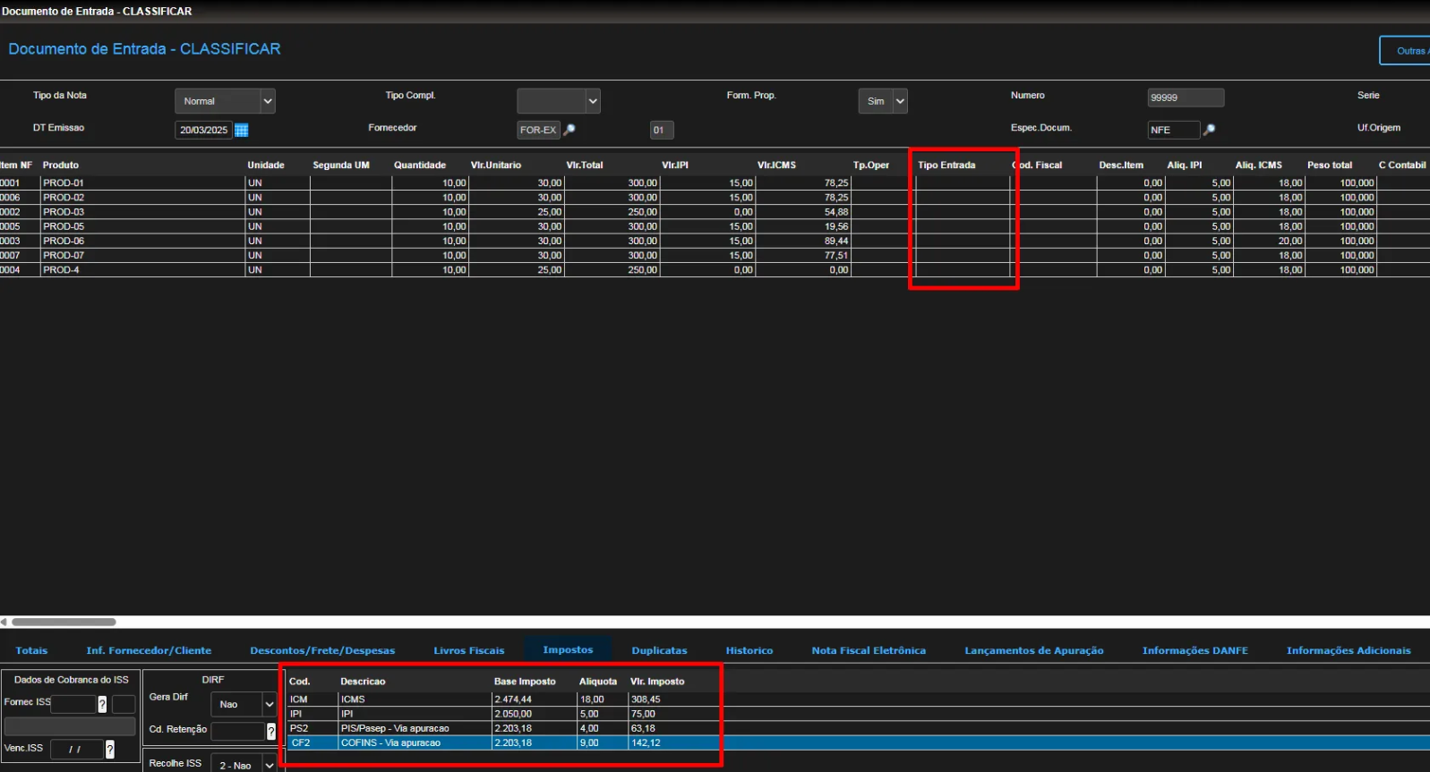 03. EXEMPLO EM OPERAÇÃO DE DOCUMENTO DE ENTRADA