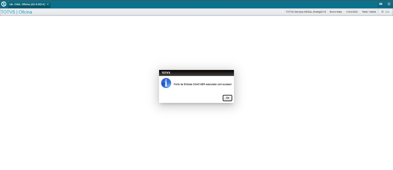 Foi implementada a chamada do ponto de entrada OXA019BR na Rotina de Liberação de Crédito (OFIXA019), para que na abertura da mesma seja possível adicionar novas rotinas no Browse.