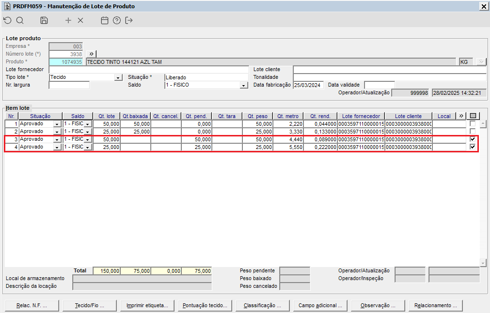 Imagem 02 - Coluna "última metragem" carregado conforme o item de lote.
