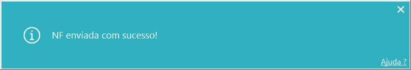 Imagem 05 - Ao acionar o botão mencionado anteriormente, a mensagem acima é apresentada, informando que a NF foi enviada com sucesso e a transação é encerrada.