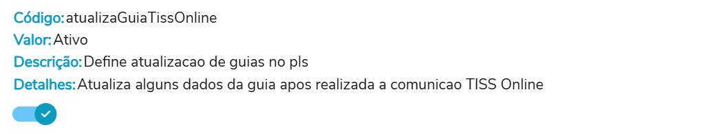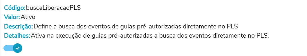 | Detalhes | Ativa na execução de guias pré-autorizadas a busca dos eventos diretamente no PLS. |