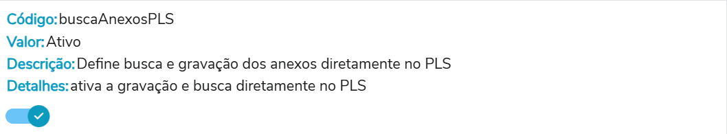| Descrição | Define busca e gravação dos anexos diretamente no PLS |