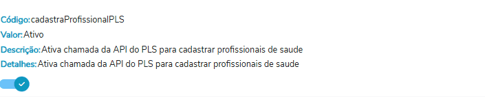 | Descrição: | Ativa chamada da API do PLS para cadastrar profissionais de saúde |