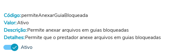 | Detalhes | Permite que o prestador anexe arquivos em guias bloqueadas |