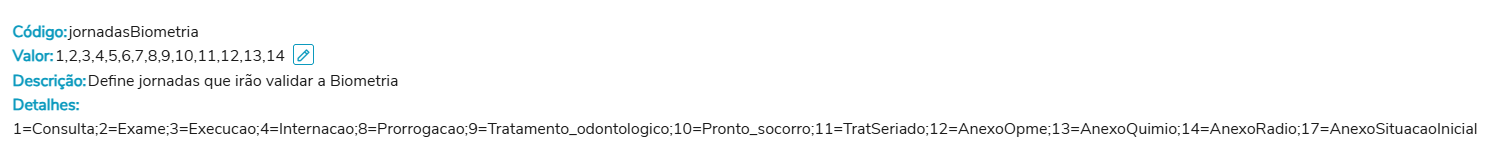 | Detalhes | 1=Consulta;2=Exame;3=Execucao;4=Internacao;8=Prorrogacao;9=Tratamento_odontologico;10=Pronto_socorro;11=TratSeriado;12=AnexoOpme;13=AnexoQuimio;14=AnexoRadio;17=AnexoSituacaoInicial |