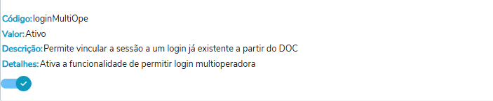 | Detalhes: | Ativa a funcionalidade de permitir login multioperadora |