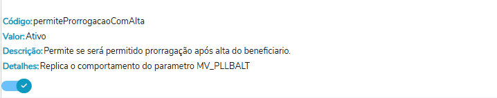 | Descrição | Permite se será permitido prorragação após alta do beneficiario. |
