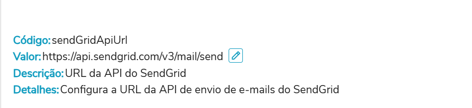| Detalhes: | Configura a URL da API de envio de e-mails do SendGrid |